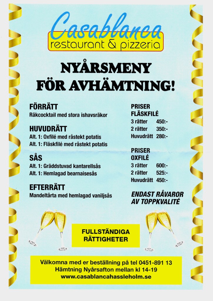 Nu går det att beställa din nyårsmeny för avhämtning.